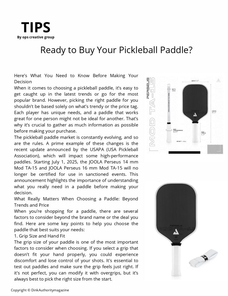 READY TO BUY YOUR PICKLEBALL PADDLE
